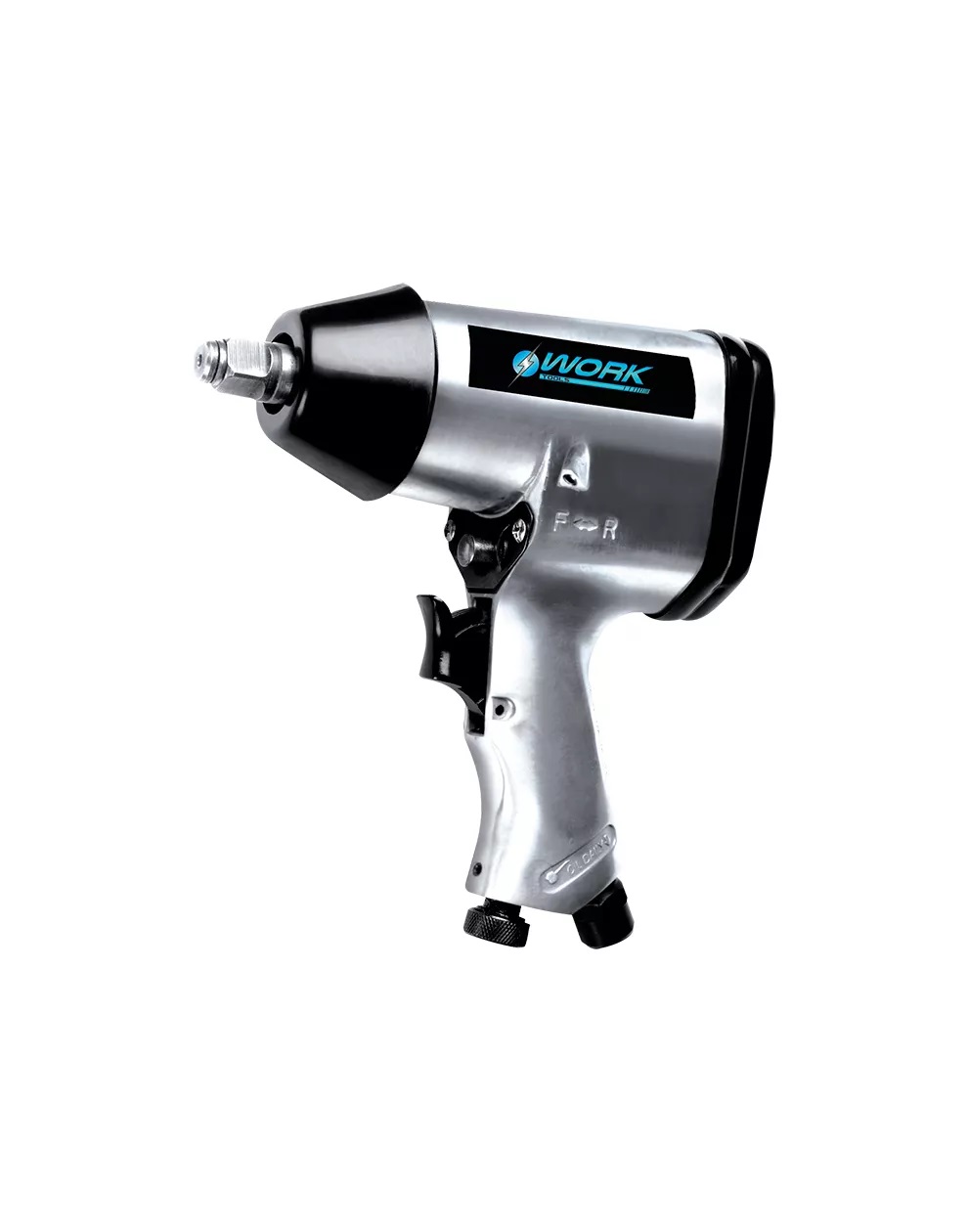 Llave de impacto con mandril con entrada de aire de 1/4″ (6mm) . Velocidad en vacío 7.000RPM. Consumo promedio de aire 5CFM. Presión de trabajo 6.3 Bar (90Psi). Salida de aire Frontal. Peso 2.8Kg (6.2 Libras). Torque Máximo 230ft/lb – 312Nm. Incluye acople rápido. 1 año de garantía.